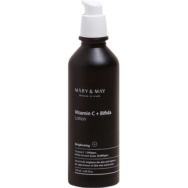 • Feature: Mary&May Vitamin C+Bifida Lotion is enriched with bifida ferment lysate and vitamin C. The formula combines probiotic support and antioxidant brightening for daily care.
